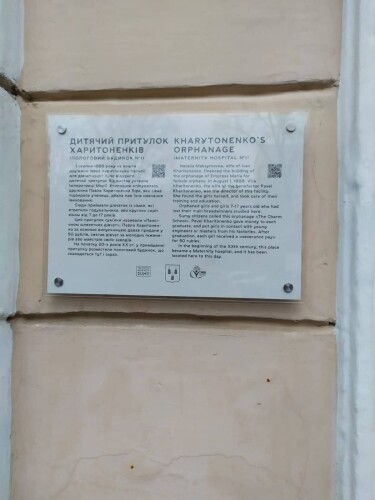На табличках розміщено стислу інформацію українською та англійською мовами про будівлю архітектурної спадщини.